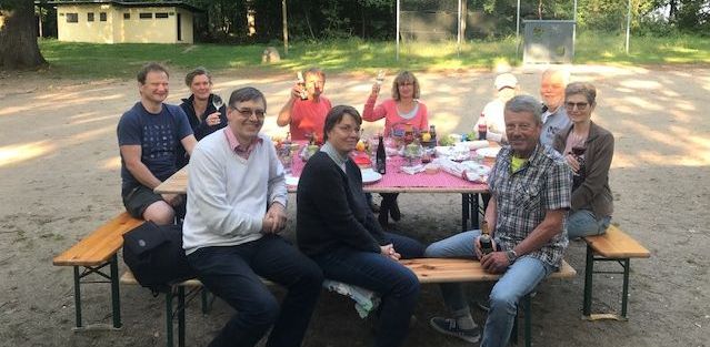 Auch ein vorübergehender Regenschauer und das Verbot von offenem Feuer konnten nicht stören: Wir hatten einen gemütlichen Nachmittag und Abend bei leckerem Essen, Getränken, Tanzmusik und Skatspiel. (AK)